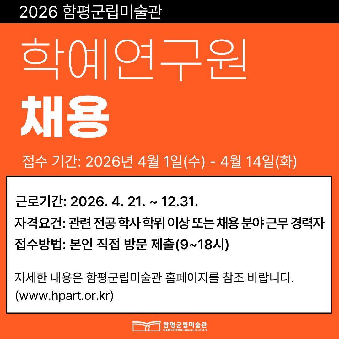 2026년 문화체육과 기간제근로자 모집 공고(학예연구원...